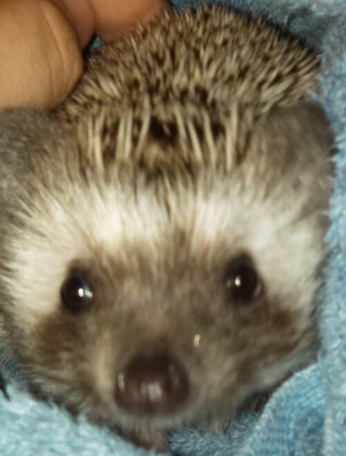 Before choosing a hedgehog it’s important to meet them.  Ask about the hoglets personality before you purchase it, and make certain to handle it prior to, or at, the pick up.  The hoglet should be active and curious.  Ensure that the baby does more than just curl into a ball and spike up when being handled, and reconsider your decision if the hedgehog begins to hiss, pop, or make a harsh barking/clicking sound.  An unwillingness to unroll and these aggressive displays are markers you do not want to encounter in your new pet.