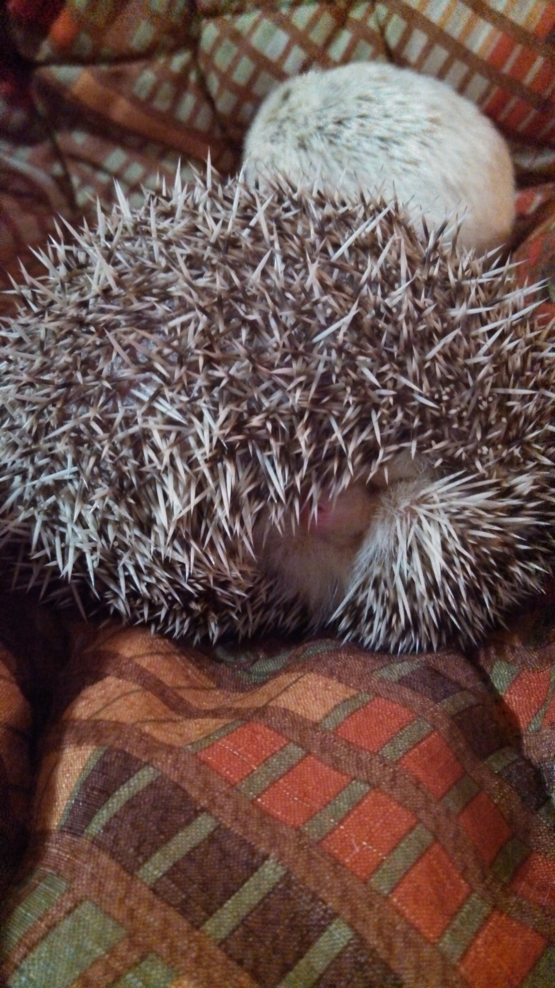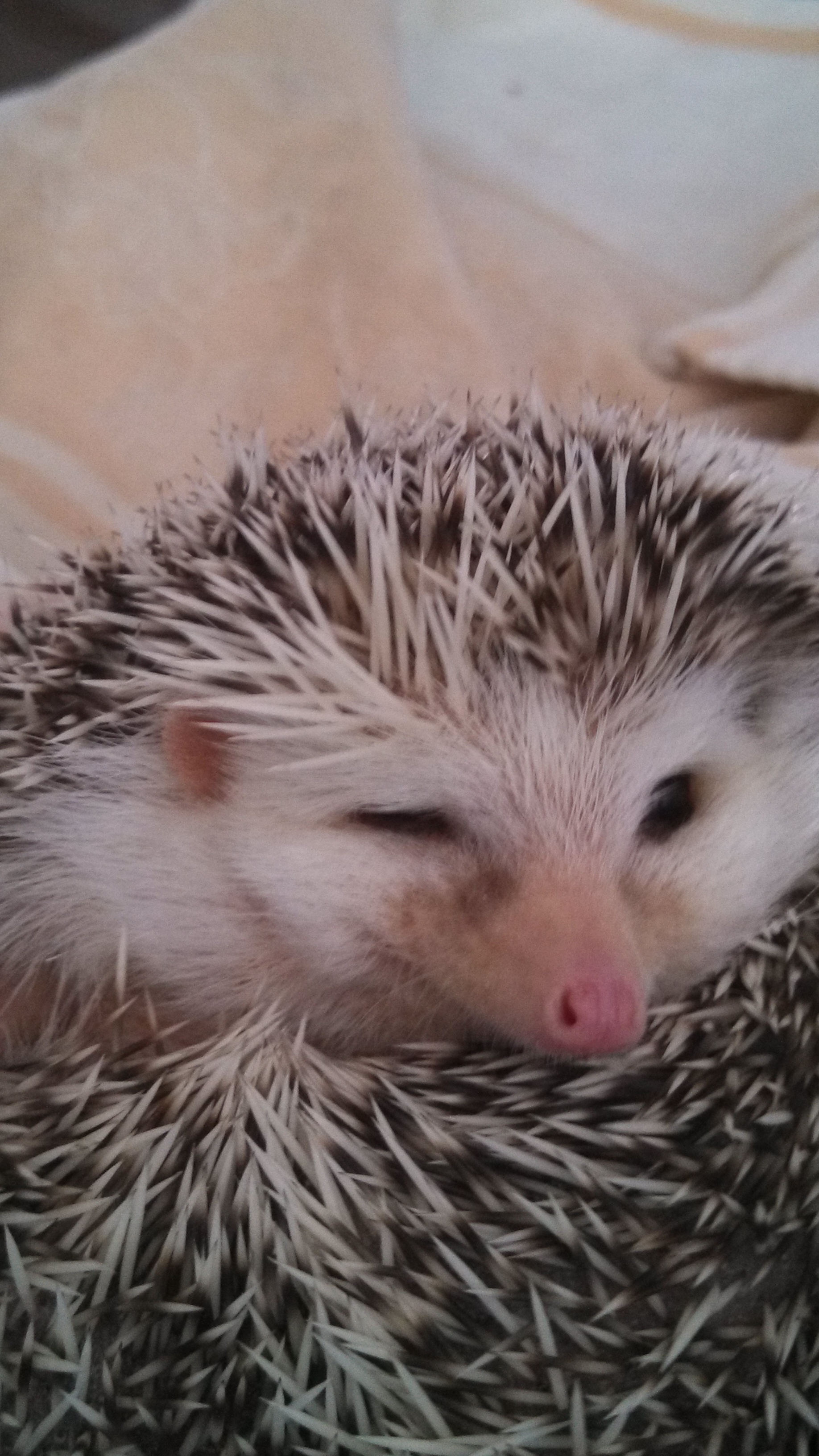 Every hedgehog owner has their stories of just how odd their hedgie’s behavior is!  For instance, our boy Sebastian has a a very special distinction that none of our other hedgies quite have. When we first rescued him, he was often just a spiky ball of quills. He refused to open up to us – not for treats, not for food, not for anything. We even set him down with one of our females. Would he open up to say hi to her? She licked his quills and he complained in huffs and growls that really, really confused the girl. She eventually gave up. He seemed satisfied then. As satisfied as a ball of spikes can be.