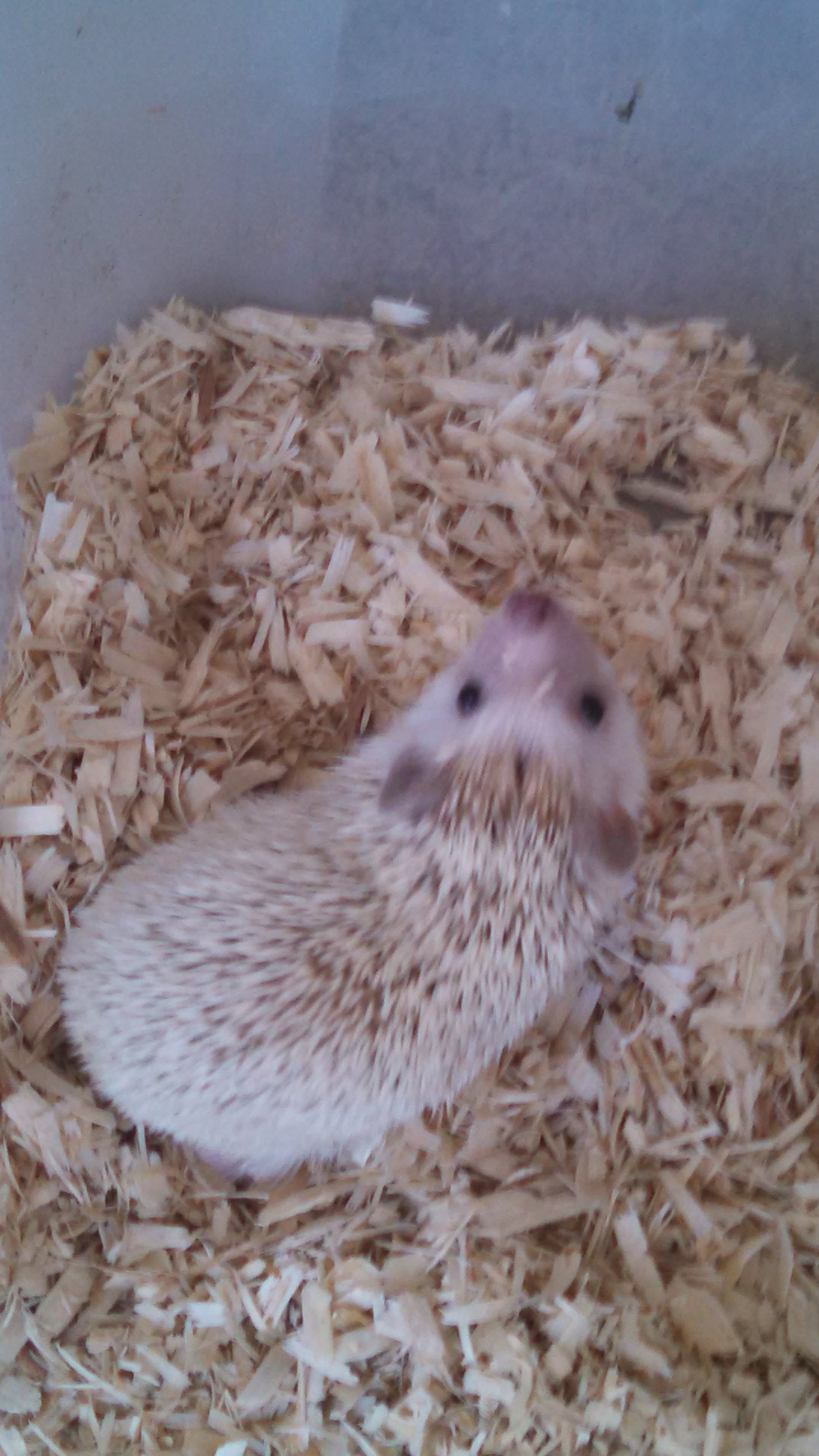 This is Frozone, a rather happy hog. She’s about a year old now, and is a chocolate chip girl.  She comes from a platinum line, and is very close to being so herself. We’re hoping we might get some double white hoglets in our new litter with her! She’s extremely outgoing, and was actually going to be kept as a pet before we got her. We put Watson in with her recently, and fingers crossed, will probably have a prickle born around April 20 – 30…