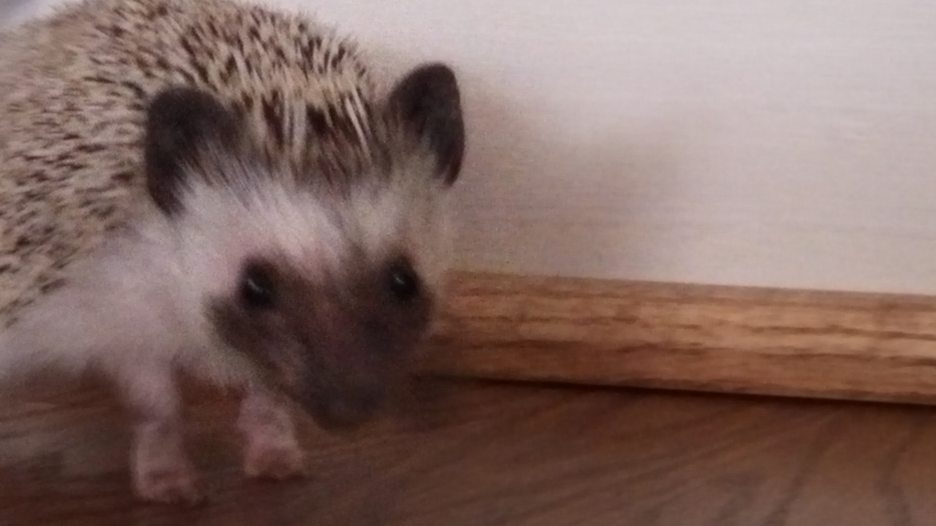Sebastian was born April 22, 2013. He’s a cinnicot male, with an adorable pink nose and a white facial mask. He has the personality of a hoglet, still mouthing at most things that come his way and huffing in annoyance when he struggles to self-anoint. He’s our first rescue, and with our help he’s changed from a ball of quills resembling a blowfish to a curious, if cautious, hedgehog.